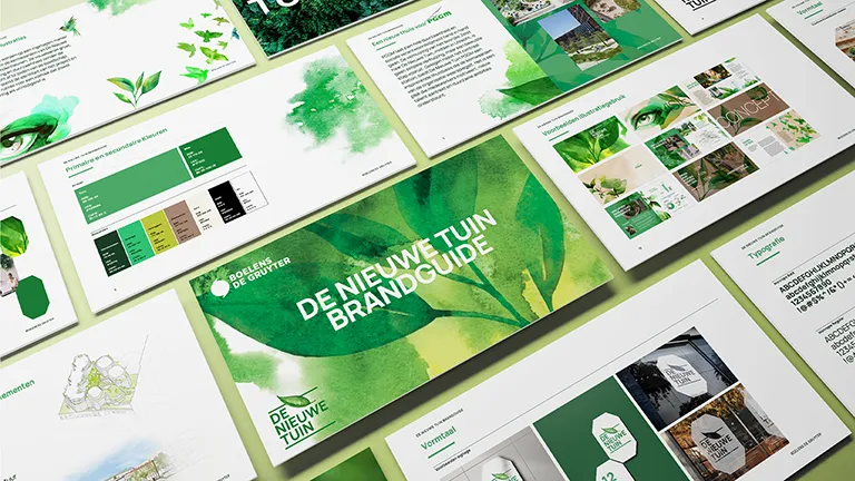 Brand identity for De Nieuwe Tuin, the future PGGM headquarters in Utrecht. Reflecting PGGM’s green legacy, the branding brings nature into the city, capturing the project’s vision of sustainability, wellbeing, and transformation of the former Gildenkwartier into a modern, garden-focused workplace.